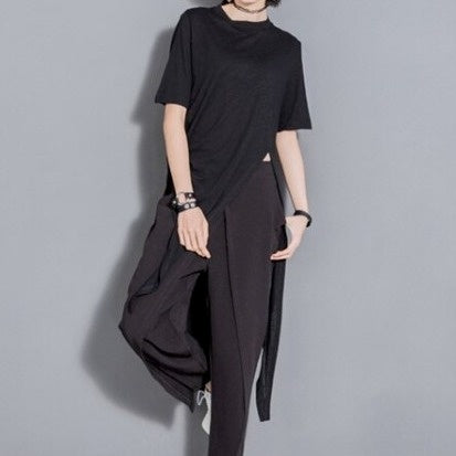 Asymmetrical round neck T-shirt(G2282)