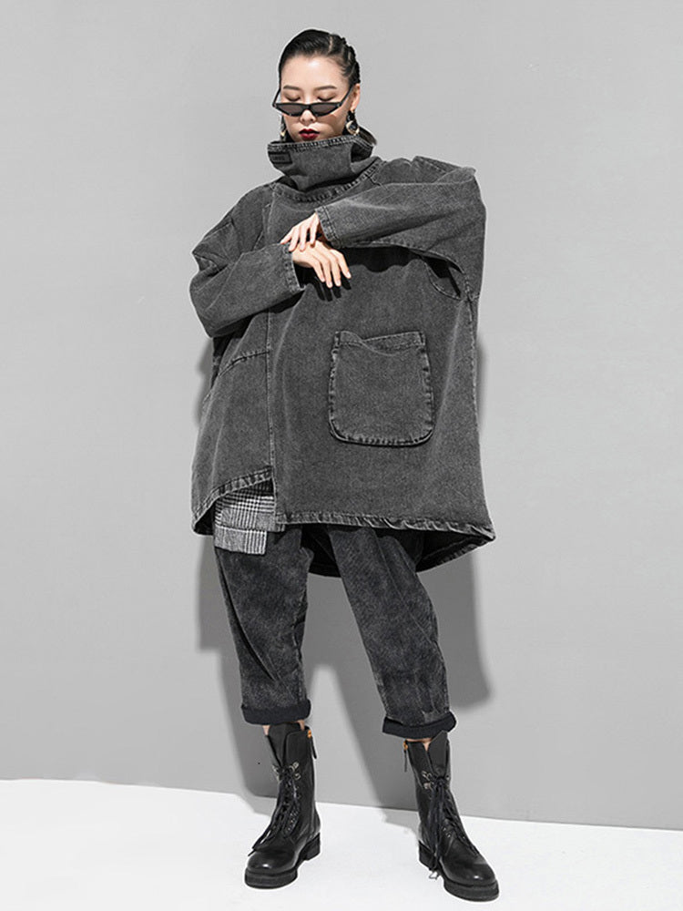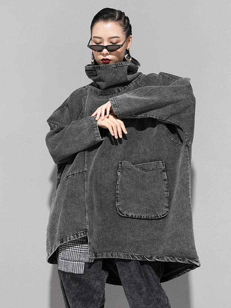 ゆるく着れちゃう特大の黒デニムトレーナー。