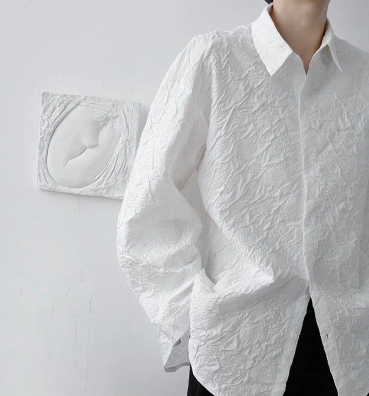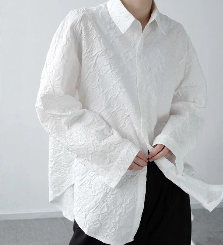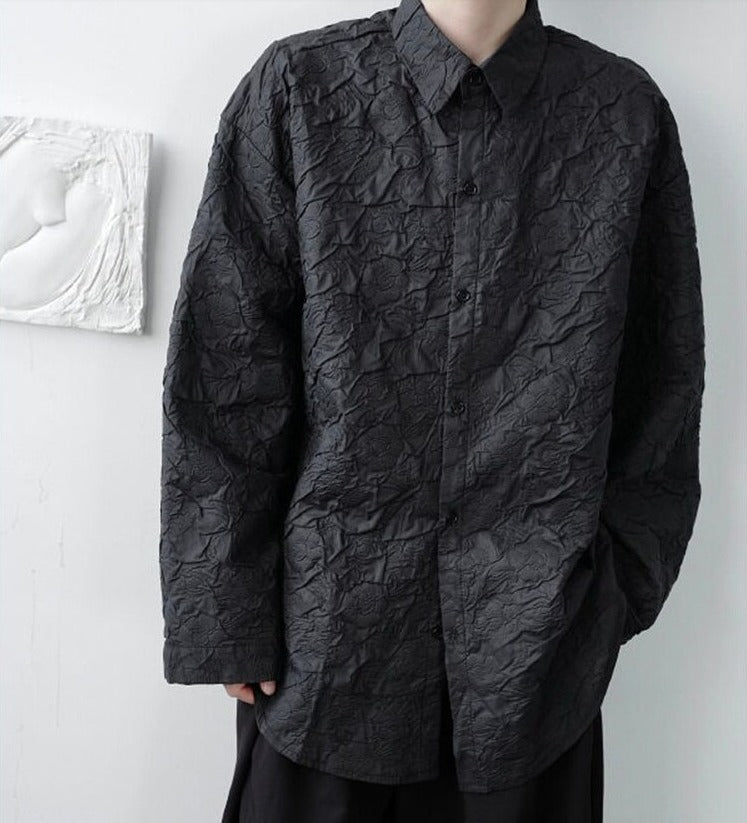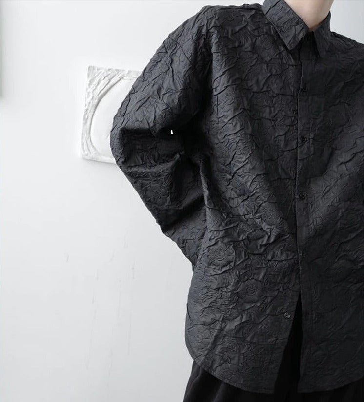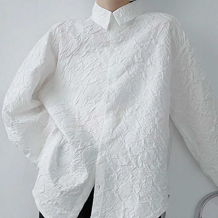 Lapel collar jacquard blouse(G2241)