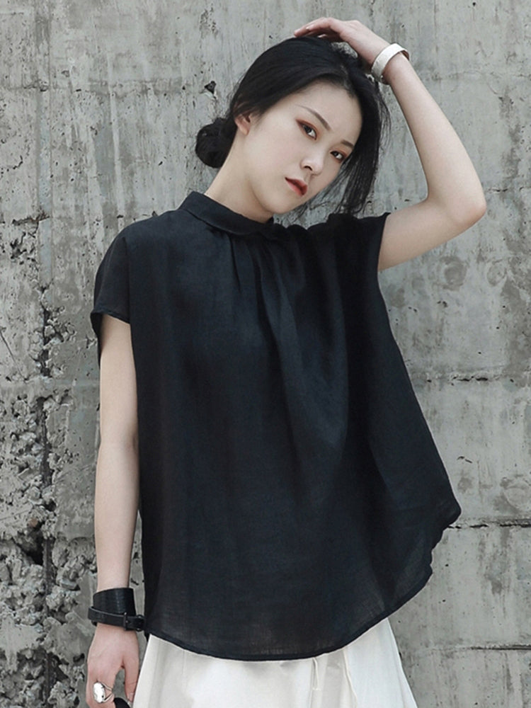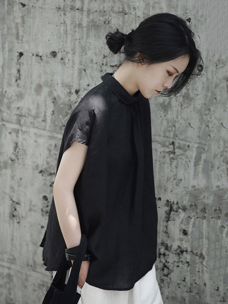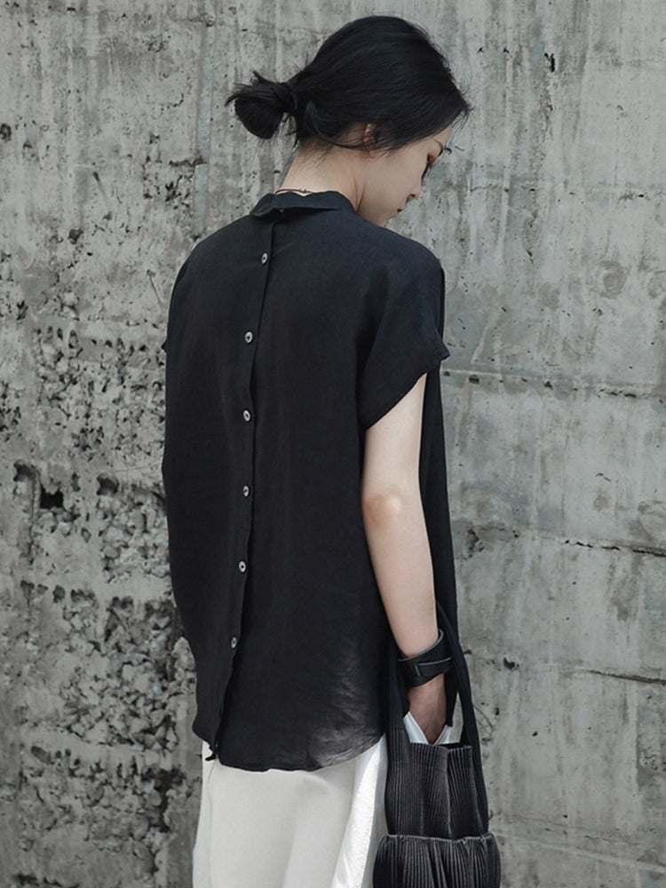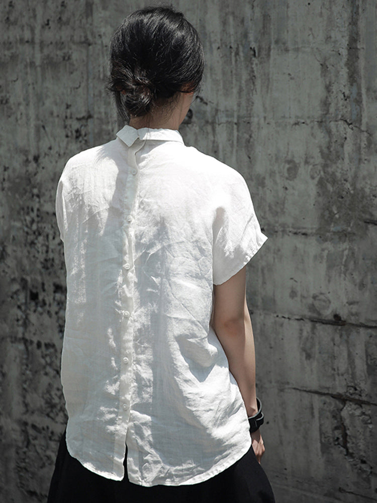 Linen back button blouse(G1728)