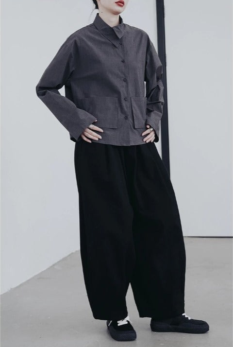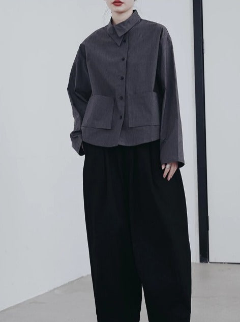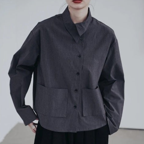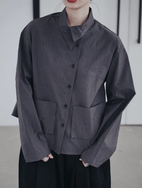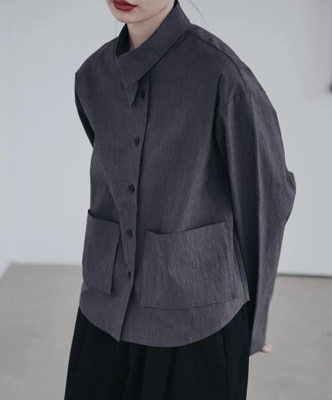 襟のデザインが個性的なカジュアルシャツ。毎日のおしゃれのアクセントにおすすめなシャツです。