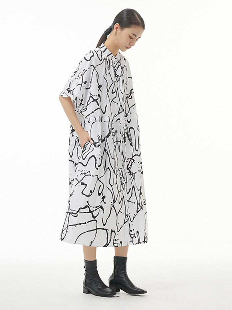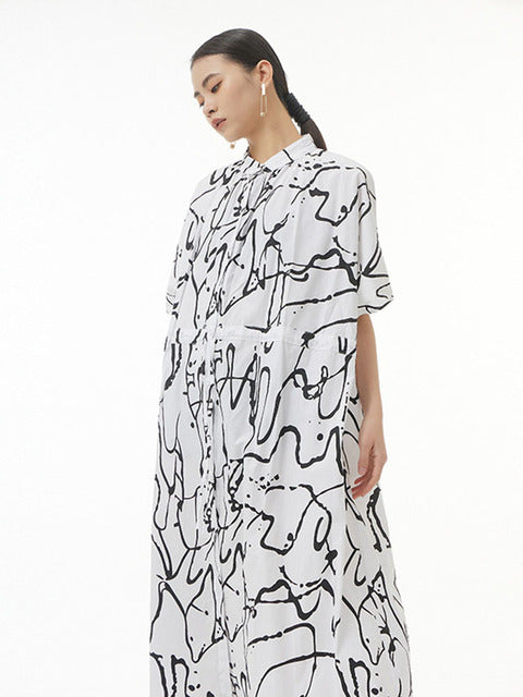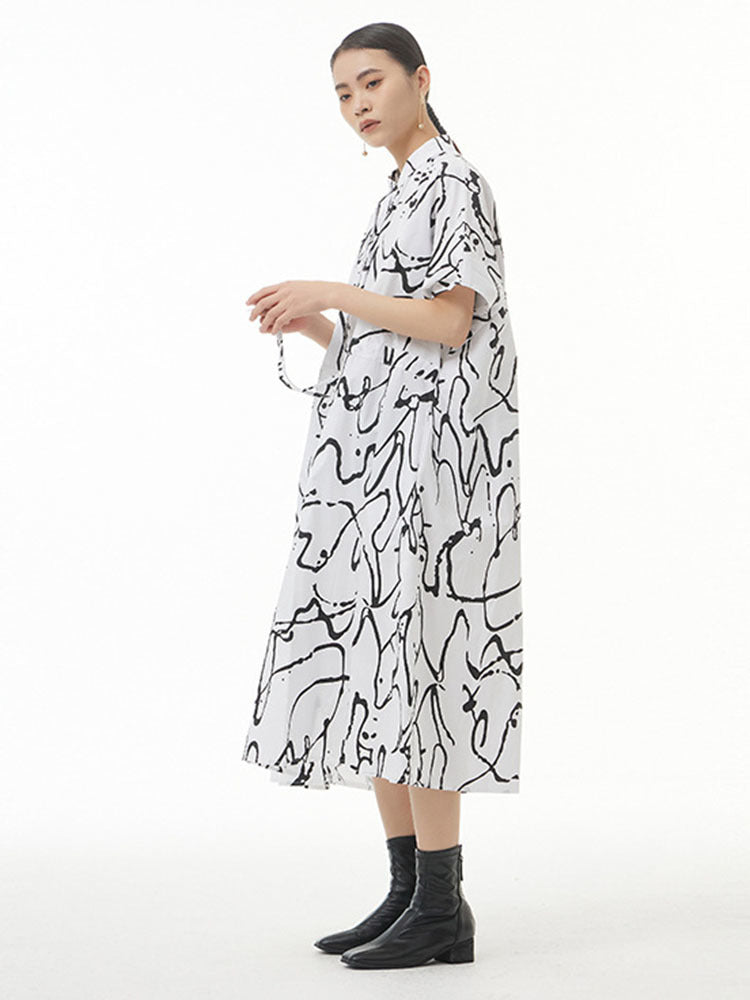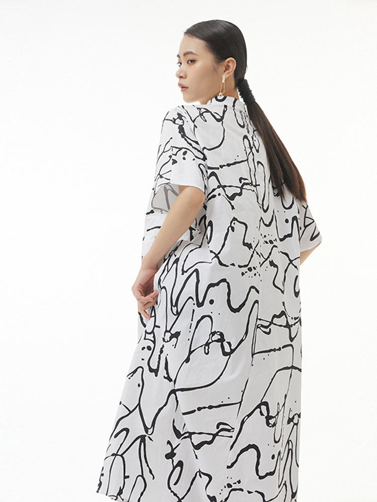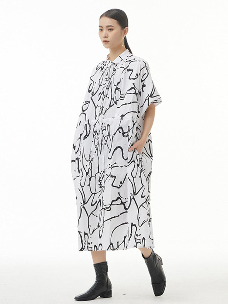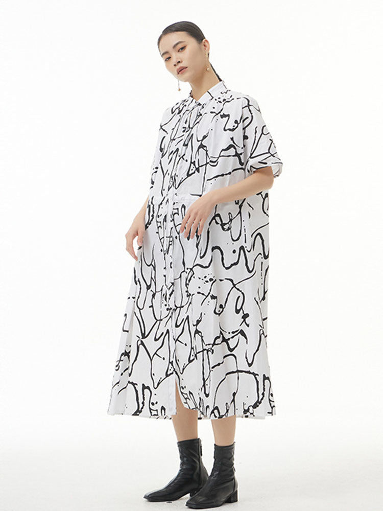 Pattern Printed Big Size Long Shirt Dress(G2122)