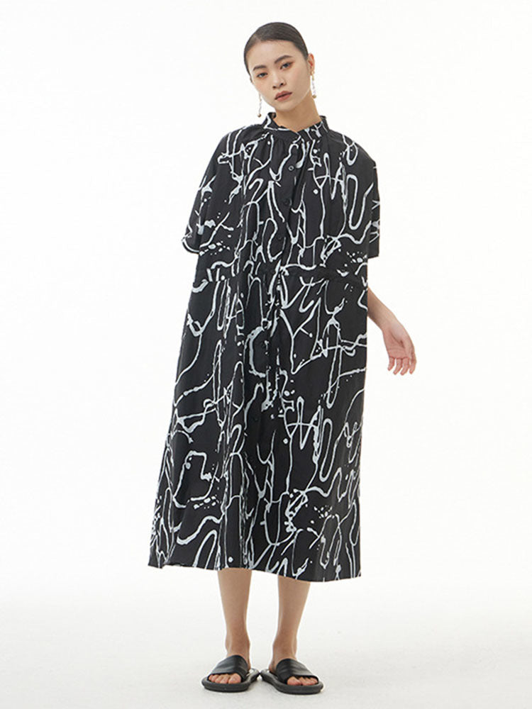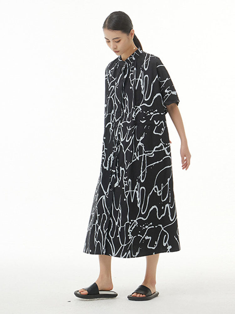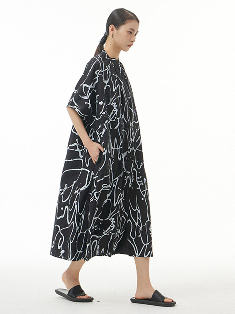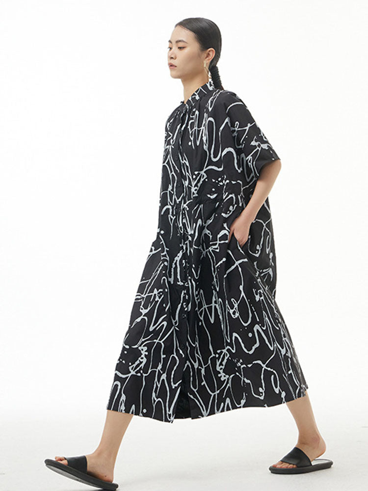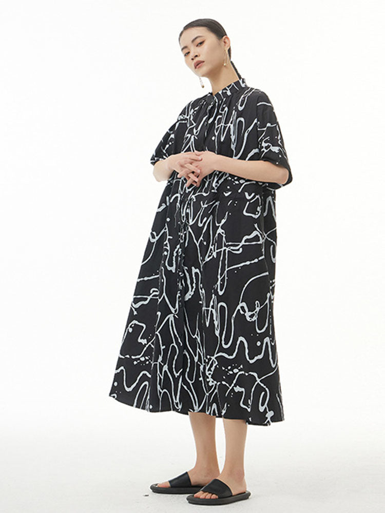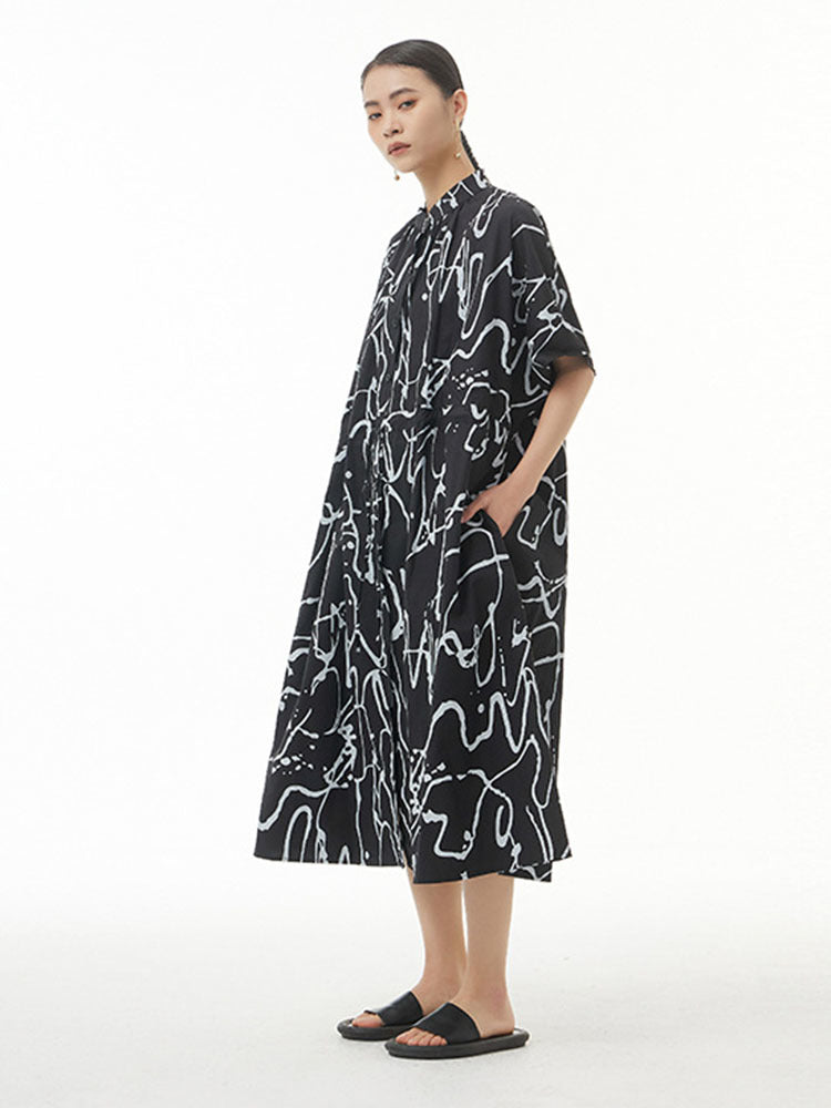 Pattern Printed Big Size Long Shirt Dress(G2122)