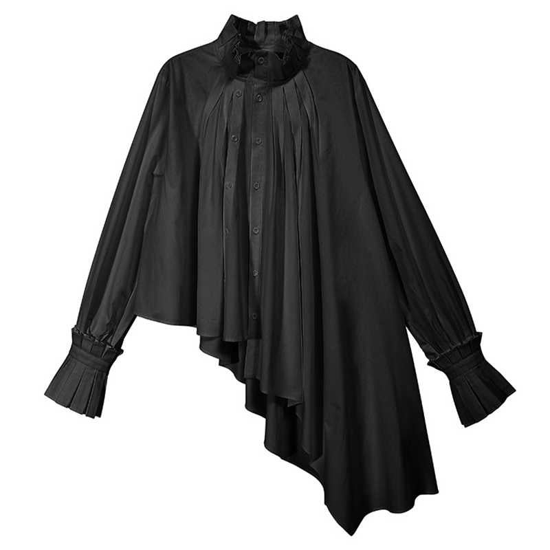 襟周りや袖回りまで包み込む愛らしいプリーツがポイント。