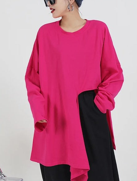 Round neck irregular slits shirts(G2725)