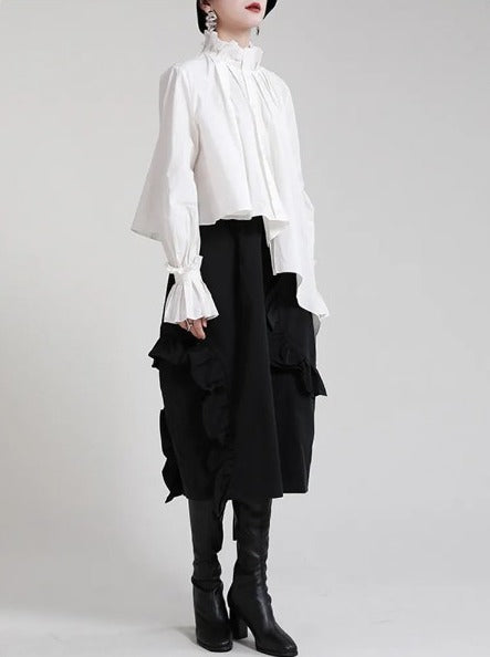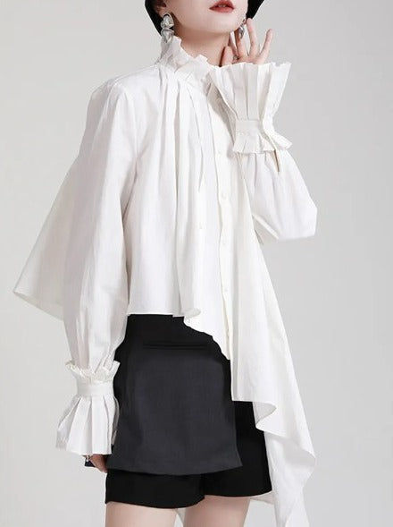 細かなプリーツで上品なブラウスはフォーマルな場面でも使えそう!