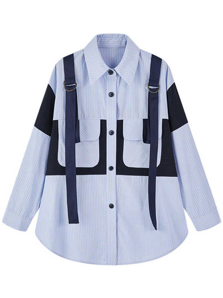 Stripe big pocket blouse(G1679)