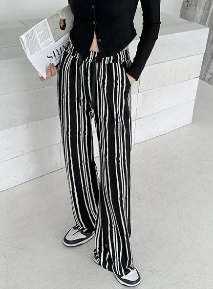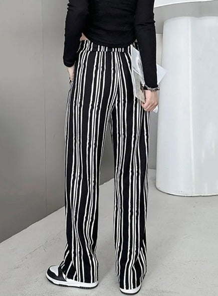 足長効果たっぷりのストライプパンツは一枚はキープしたい。