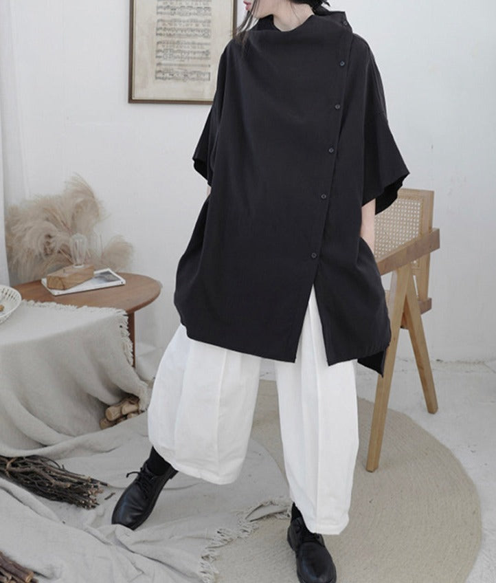 首をスッキリ見せてくれるスタンドカラーは一枚は欲しいアイテム。
